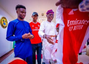 Governor Sanwo-Olu stated: “Exciting day at the State House, Marina today as I had the pleasure of hosting my favorite @Arsenal player, Star Boy Bukayo Saka. @BukayoSaka87.