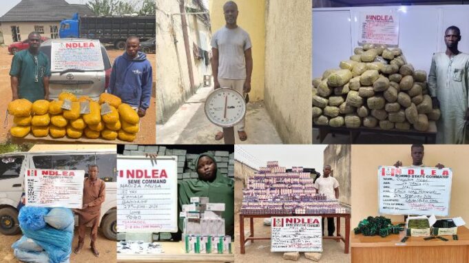 Additional seizures included 499.2kg of skunk recovered in Dei-Dei, Abuja, and 7,000 capsules of tramadol intercepted along the Bama–Konduga road in Borno State. Arrests were also made in Kano, Katsina, and Osun States in connection with codeine syrup and cannabis trafficking.