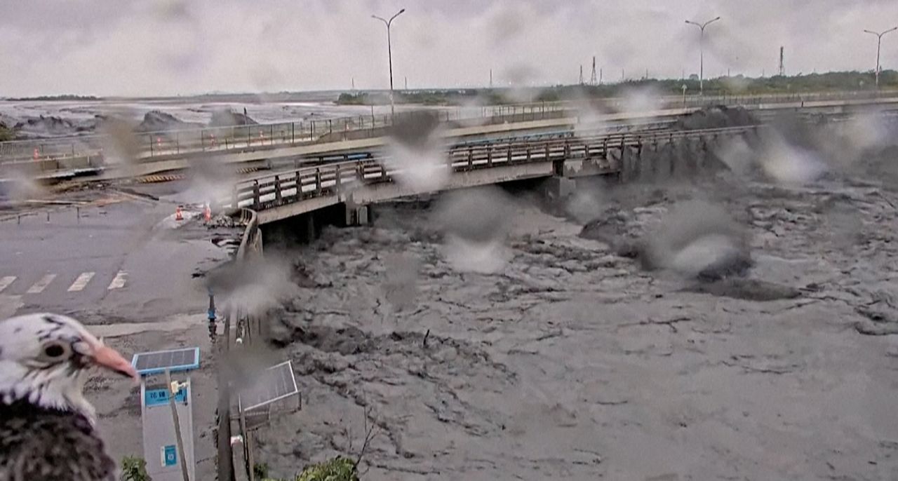 The lake in eastern Hualien county – formed by series of landslides that created a natural dam wall – burst on Tuesday, washing away a bridge and sweeping into a town with a trail of thick sludge and mud.