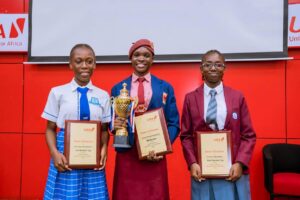 The second prize was awarded to Princess Sholabomi, a 15-year-old student of Value Spring College, Lagos State, who won a N3 million educational grant and a laptop, while the third prize of N2.5 million and a brand-new laptop went to 15-year-old Sharon Nwajiaku of Ota Total Academy, Ogun State.