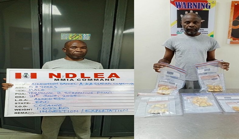 The NDLEA officers arrested the two passengers at the screening point of terminal II of the Lagos airport after they tested positive for ingestion of illicit substances on Friday, June 21, 2024.
