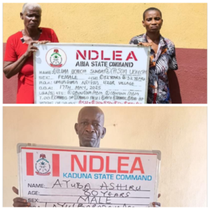 Two octogenarians: an 80-year-old grandpa Ayuba Ashiru and 82-year-old grandma Mrs. Uloma Uchechi Sunday as well as her daughter Chisom Uchechi, 32, top the list of suspects arrested by operatives of the National Drug Law Enforcement Agency, (NDLEA) in raids carried out across the country.