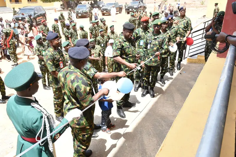 At a ceremony held at Ribadu Cantonment, Kotoko Barracks, the Chief of Army Staff, Waidi Shu’aibu, unveiled four blocks of residential buildings comprising 120 flats, alongside a 60,000-litre solar-powered borehole.