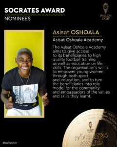 The nomination acknowledges Oshoala’s remarkable contributions to her community through the creation of Asisat Oshoala Academy.