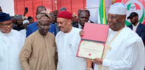 The PDP National Working Committee (NWC) issued the certificate of return to Atiku at the party’s national secretariat in Abuja.