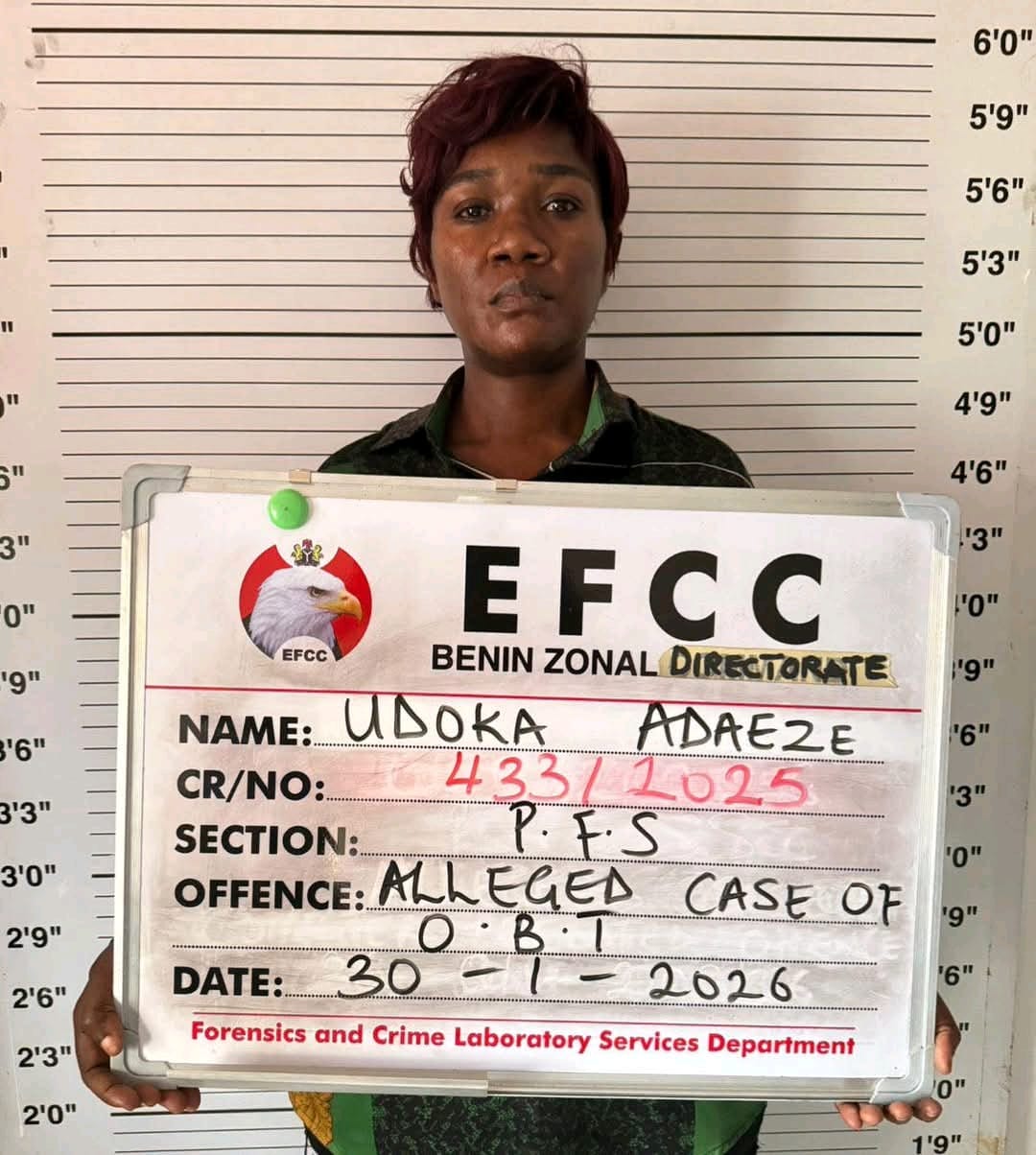 The Benin Zonal Directorate of the Economic and Financial Crimes Commission (EFCC) has arrested a 48-year-old woman, Mrs. Salt Adeaze…