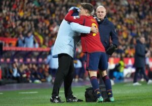 The 19-year-old player suffered a knee injury during Spain’s UEFA Euro 2024 qualifier against Georgia on Sunday night and had to be taken off in the 26th minute of the match.