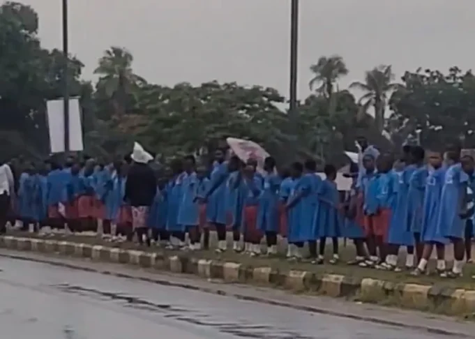 Widespread outrage has erupted across Nigeria following the circulation of videos showing school children standing in the rain to welcome President Bola Ahmed Tinubu during his visit to Benue State.