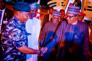 The President’s official jet, however, touched down at the Presidential Wing of the Nnamdi Azikiwe International Airport in Abuja on Sunday evening.