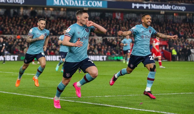 Burnley’s victory also helped Sheffield United edge closer to a Premier League return as Middlesbrough remain in fourth.