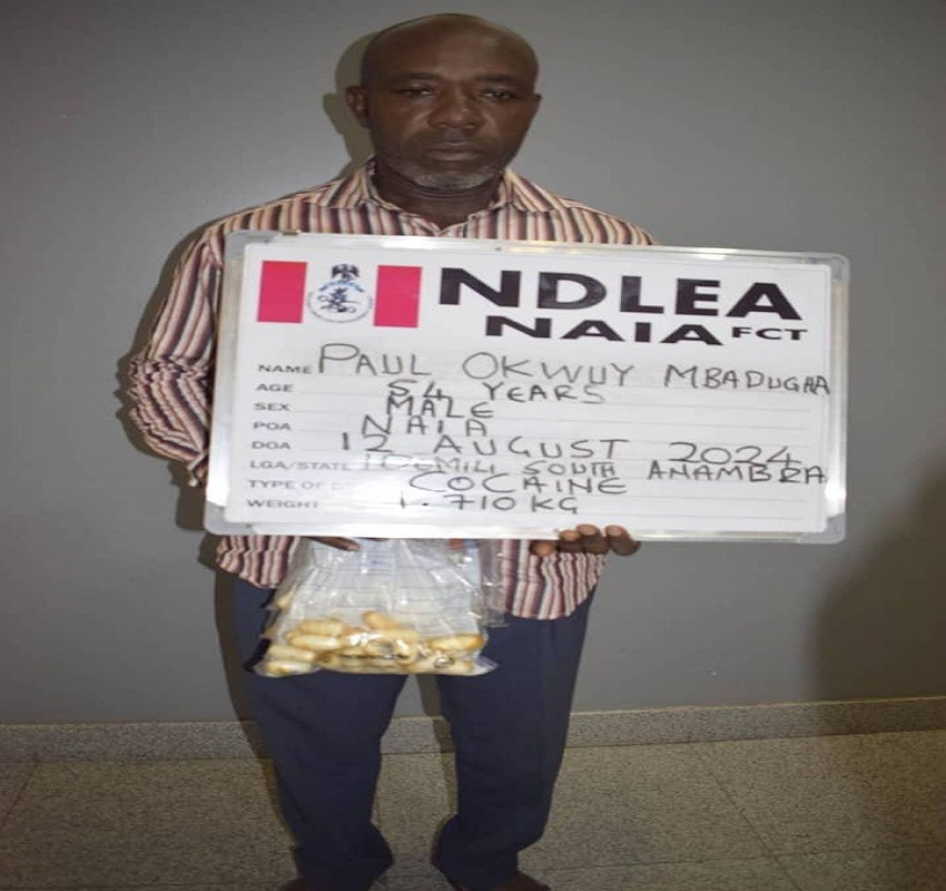 A Vietnam-bound businessman, Paul Okwuy Mbadugha, has been arrested by operatives of the National Drug Law Enforcement Agency (NDLEA) at the Nnamdi Azikiwe International Airport in Abuja after he tested positive for ingestion of cocaine.