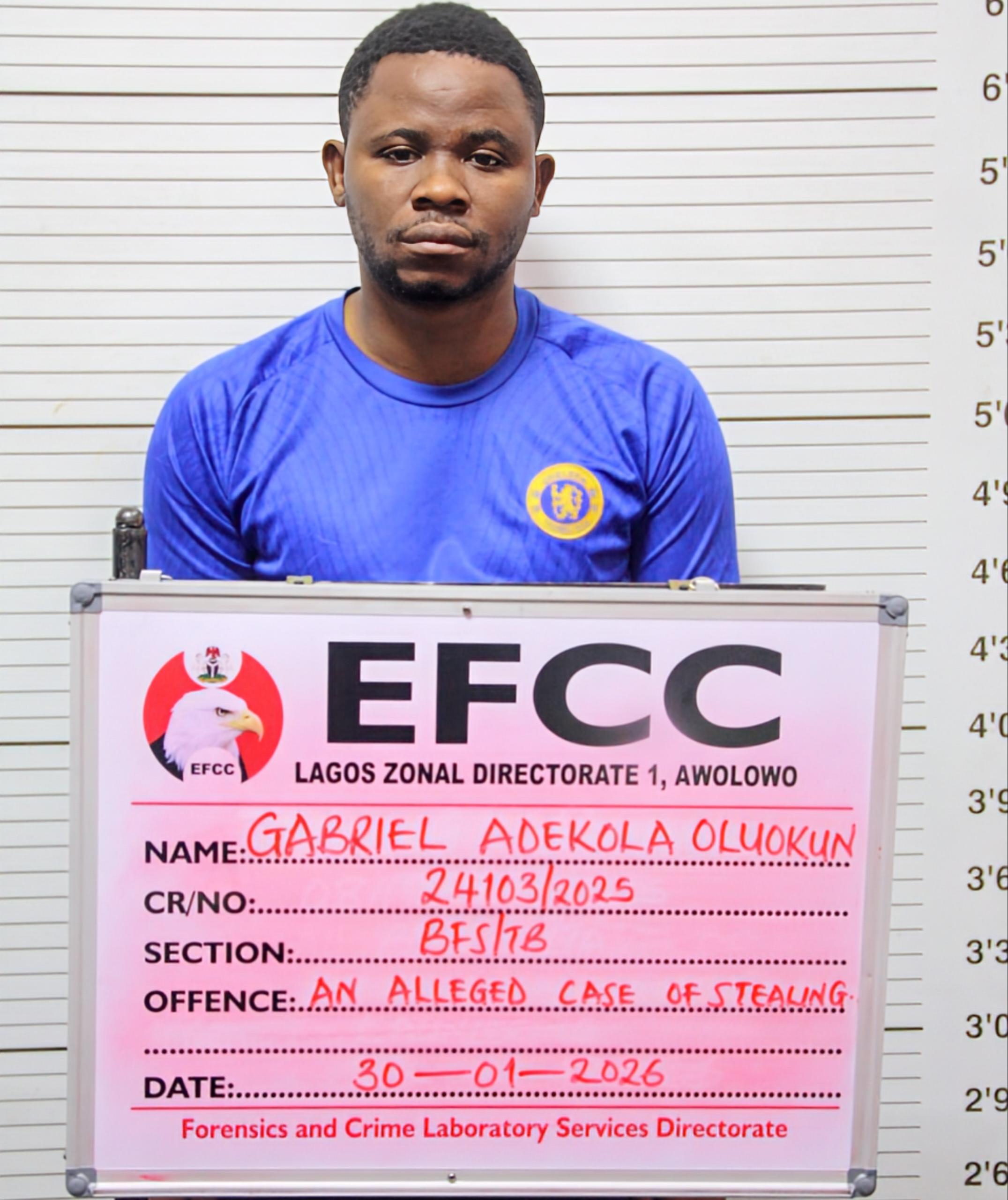 The Economic and Financial Crimes Commission (EFCC) on Monday arraigned an ex-convict, Oluokun Gabriel Adekola, before the Special Offences Court sitting in Ikeja, Lagos, over an alleged N12 million theft.