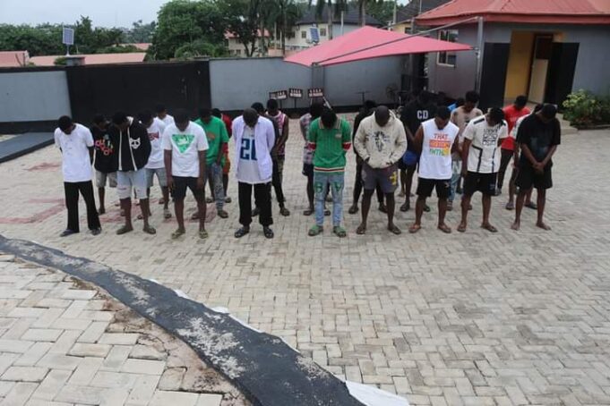 The arrested suspects are Abdullahi Kehinde Tawab, Ayomide Alase Abiodun, Hassan Larla Olamilekan, Makinde Adebowale Saheed, Tofunmi Oyebade Segun, Rotimi Gbadamosi Ayomide, Igbamidun Joshua Olamiposi, Gbadamosi Samson Tobiloba, Qodir Ayoola Babalola, Frank Obi Ogechukwu, Olawale Abowaba Joshua, Dauda Kareem Oladayo, Hammed Dauda Akanji, Yusuf Akorede Abiodun, and Haruna Adedoyin Kayode.