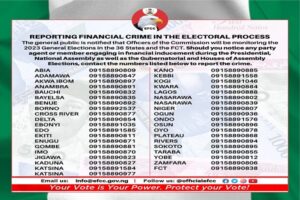 The EFCC urged Nigerians to report any case of vote buying or selling, or other evidence of financial malpractices designed to compromise the electoral outcome through the hotlines.