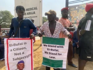 Videos circulating online showed the supporters accusing security agents of dispersing them with teargas while allowing a separate group of anti-El-Rufai protesters to assemble nearby. The opposing demonstrators carried banners urging him to face the allegations, with messages such as, “El-Rufai cannot hide behind politics, let the law catch up,” and “Answer the charge, El-Rufai.”