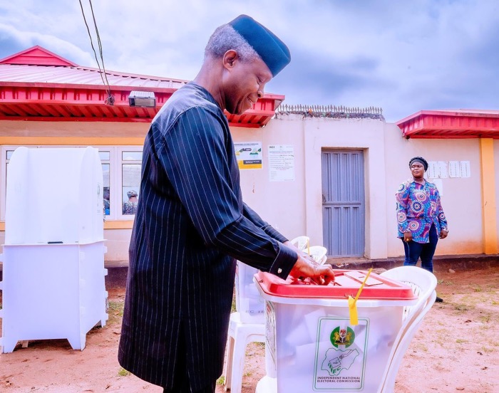 Osinbajo and his wife, Dolapo, who arrived at the polling centre at about 10.31 a.m., voted at about 10.38 a.m.