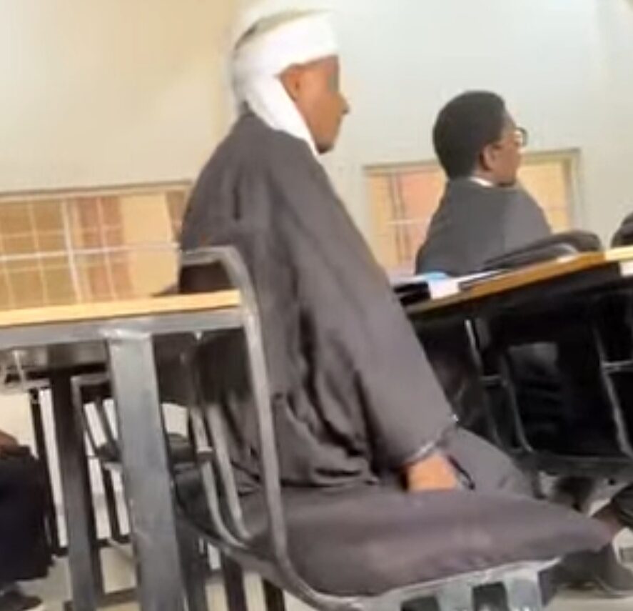 The monarch joined fellow students for early morning classes, dressed simply in a black long gown and white head tie. He was seen seated quietly at the back of the lecture hall on a three-seater desk, participating fully in the session alongside his classmates.