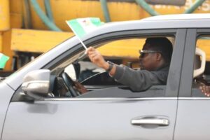 The protesters appeared to have outwitted the security agencies which took positions from the early hours of Wednesday as they moved in a convoy of vehicles while holding Nigerian flags.