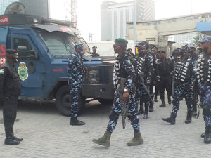 While the police are stationed at the tollgate for security purposes, officials of the Lagos Neighbourhood Safety Corps (LNSC) are maintaining a free flow of traffic.