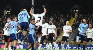 Raul Jimenez stunned title-chasing Arsenal when he put Fulham on the scoresheet in the 11th minute on a wet and grey afternoon. Saliba equalised from point-blank range shortly after the interval.