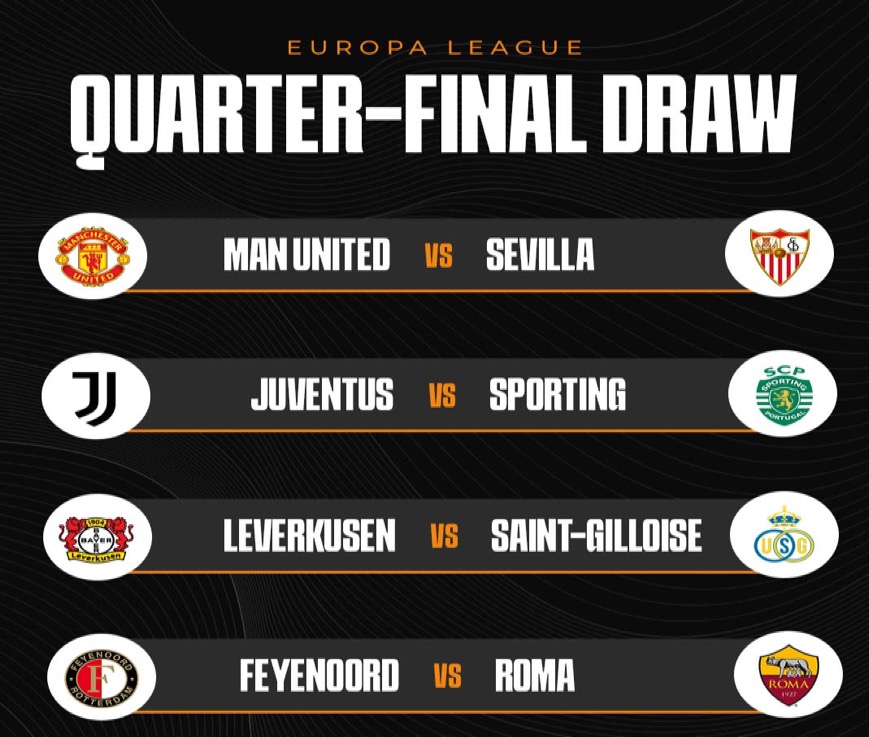 Manchester United will face Sevilla in the quarter-finals of the Europa League, while Juventus will slug it out with Sporting Lisbon.