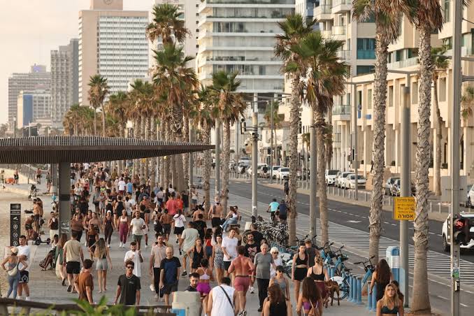 People sunbathed and played football on Tel Aviv’s beaches, streets and markets came back to life, and schools reopened on Wednesday following the deal to end the 12-day war.