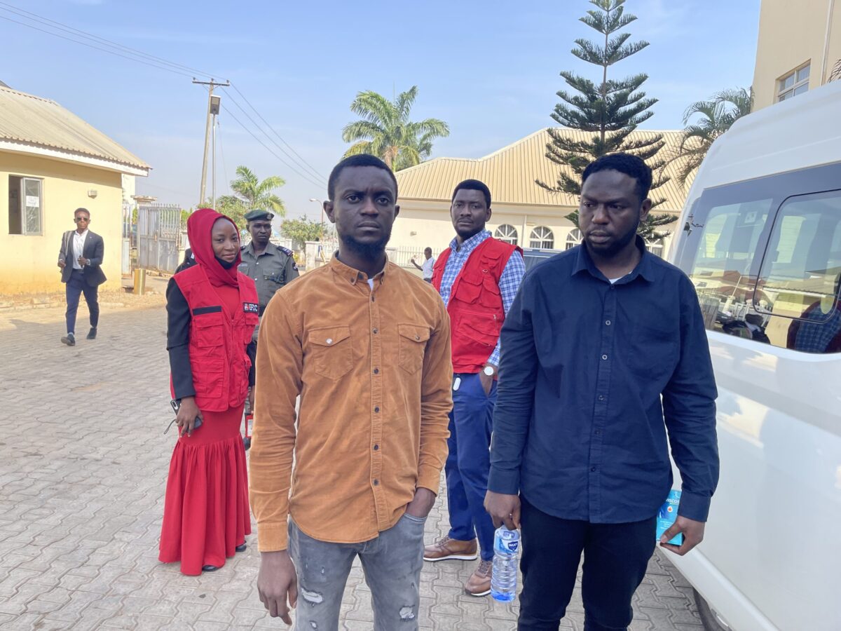 Ijeboi Dennis and Obade Monday Christian being arraigned before Justice Abubakar Baba Shani of the Federal Capital Territory High Court, Apo, Abuja on Thursday, November 17, 2022.
