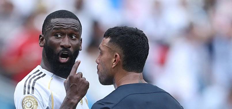 Rudiger was visibly angered following an exchange of words with Argentine Cabral and spoke to Brazilian referee Ramon Abatti Abel.