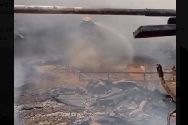 A fire on Monday destroyed an open recycling site and spread to nearby buildings along Pipeline Road, off Ekoro Road in the Abule Egba area of Lagos.