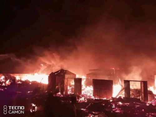 According to him, “As I am talking to you now, the fire is burning. We have not been able to put it out; it started since 4a.m. When they informed me of the fire outbreak, I quickly called the Fire Service, but due to lack of water tankers, they are not able to put it out. Now more than half of the market is destroyed.