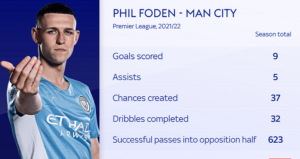 Foden, who won the award in 2020/21, has already matched his return of the previous campaign, registering nine goals and five assists while growing in importance for the team under manager, Pep Guardiola.