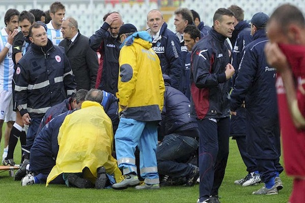 The stadium is within a south-eastern suburb of the Greek capital Athens, but the ambulance did not arrive for 20 minutes and there was no way to resuscitate the stricken player on the ground.