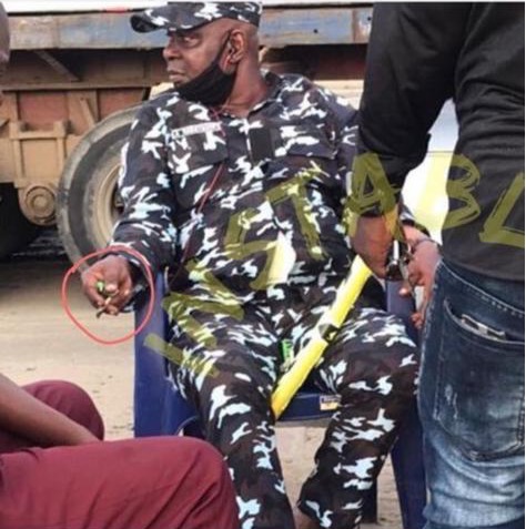 “Nigerian police officer at Ijora Lagos smoking weed on duty,” the online medium captioned the picture.