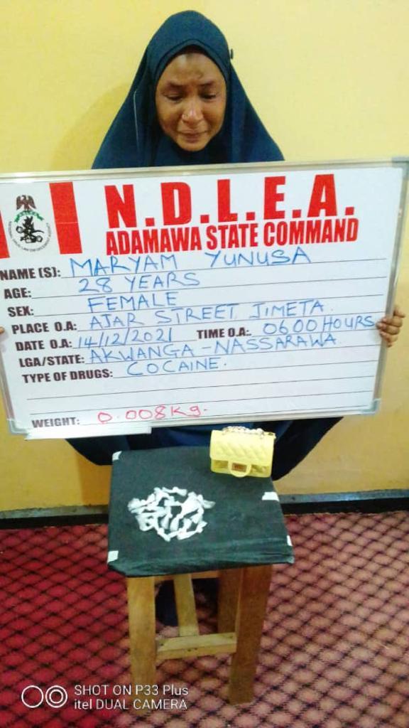 In Adamawa, a search operation in a house at Ajiya street, Jimeta led to the arrest of a female suspect, Maryam Yunusa with 16 pinches of Cocaine.