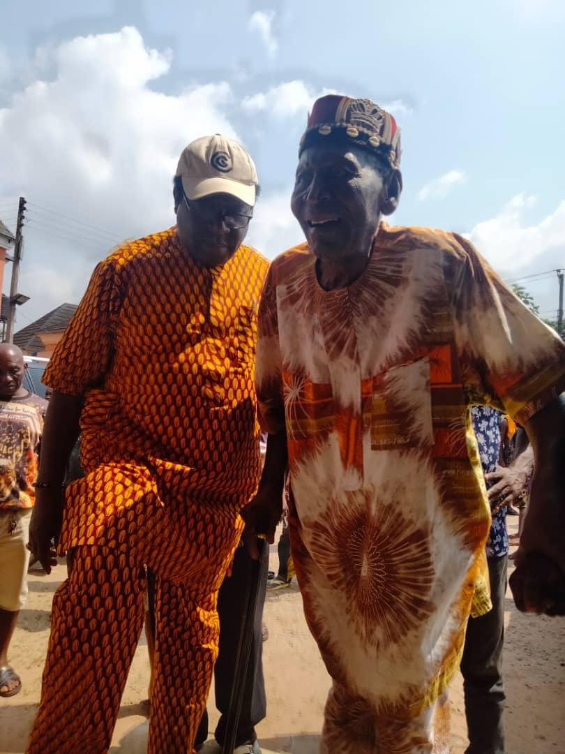 Former Deputy Governor of Imo State, Prince Eze Madumere with his father, Eze Madumere after the release of the traditional ruler on Wednesday in Imo. November 24, 2021