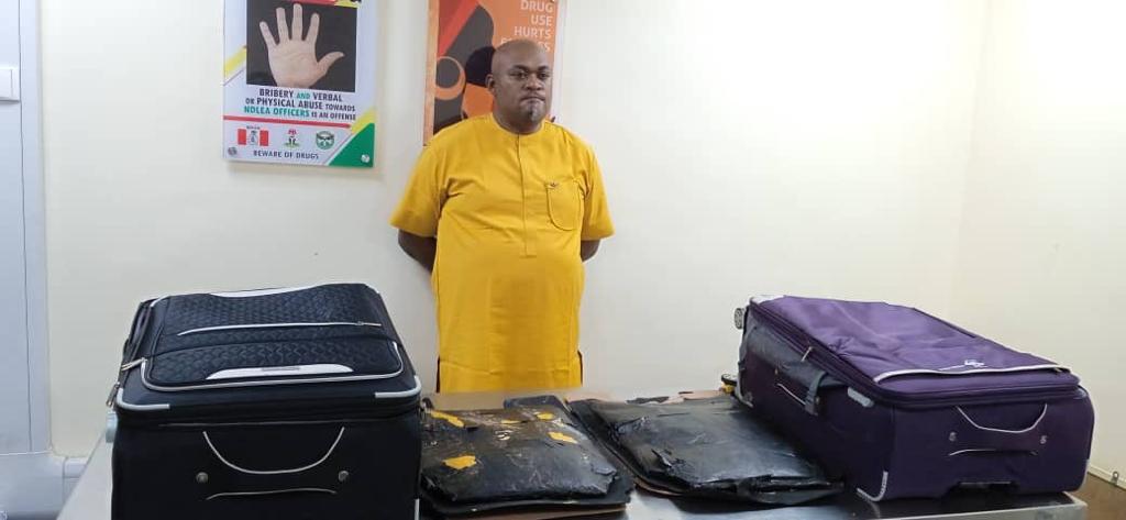 The operatives of the National Drug Law Enforcement Agency (NDLEA) have arrested a businessman, Kingsley Celestino, at the Murtala Muhammed International Airport in Ikeja, Lagos State, over 9.40 kilograms of heroin concealed in his two travelling bags.