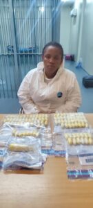 “After their arrest, a thorough search conducted on her led to the discovery of a big size wrap of cocaine that weighed 100 grams she inserted into her private part. She confessed that she was promised $5,000 upon successful delivery of the drug in India.”