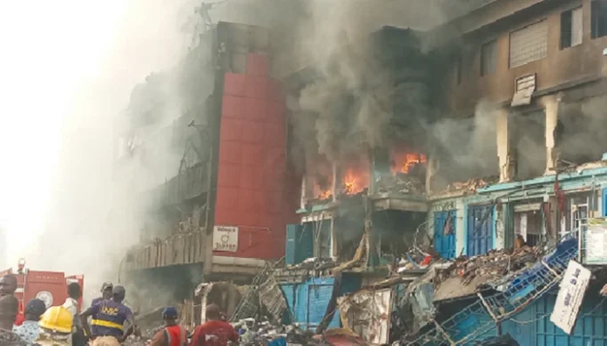 A massive fire ripped through a 25-storey building on Martins Street, Lagos Island on Christmas Eve, destroying goods worth billions of naira and shattering the hopes of many traders who were away for the Yuletide or preparing for the festive rush.