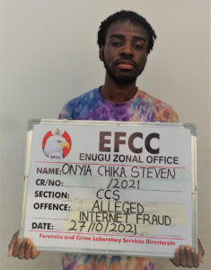 Also, a staff member of a new generation bank at Rangers Avenue Enugu whose conversation with the suspect was intercepted by the Commission, has been arrested and is currently helping the investigation.