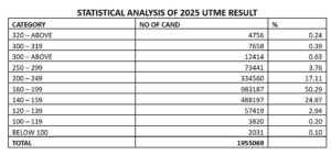 The Joint Admissions and Matriculation Board (JAMB) has revealed that more than 1.5 million candidates scored below 200 in the 2025 Unified Tertiary Matriculation Examination (UTME).