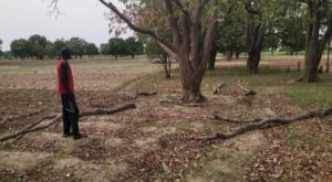 The mango orchards that once were rich are silent at present. All the dead trees are indications of what ensues when the climate pressure is combined with the environmental devastation.