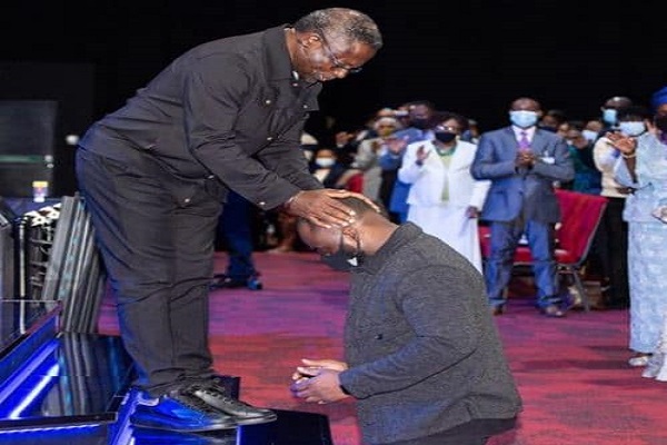 Pastor Mathew Ashimolowo praying for his son, Tobi