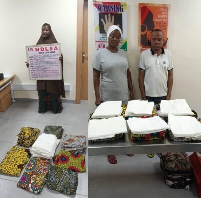 A widower, Ariyibi Ahmed Olaseinde, and a divorcee, Silifat Tunrayo Akanbi, who were going for Lesser Hajj in Saudi Arabia have been arrested by the operatives of the National Drug Law Enforcement Agency (NDLEA) at the Murtala Muhammed International Airport, Ikeja, Lagos State for attempting to export 14.4 kilograms of cocaine concealed in lace and ankara fabrics.