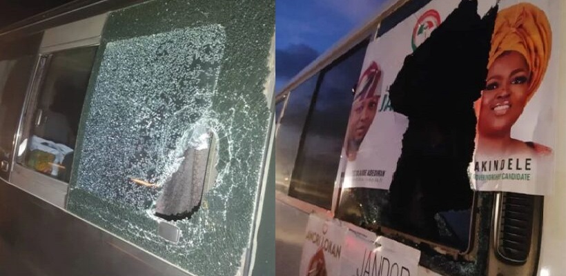 It was gathered that the campaign convoy of the PDP governorship candidate was attacked by the thugs at the Ikoga junction in Badagry Local Government Area of Lagos State on Sunday.