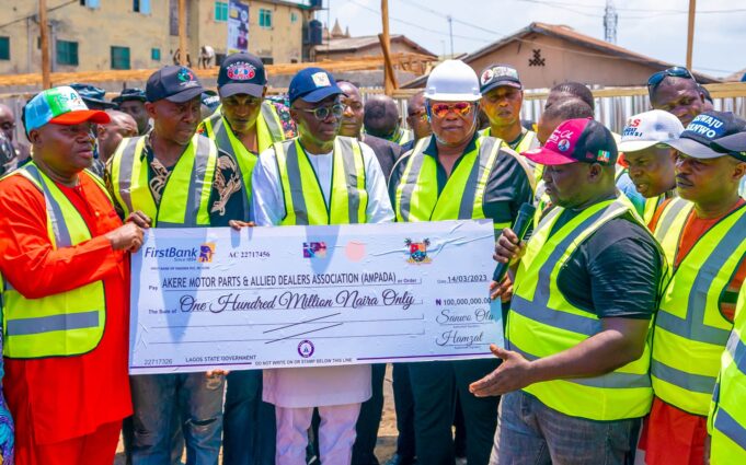Governor Babajide Sanwo-Olu on Wednesday, March 15, donated N100 million to traders in the burnt Akere Motor Parts and Allied Dealers Association (AMPADA) market in the Ajegunle area of Lagos State.