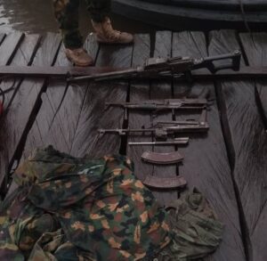 Ayo-Vaughan added: “During the raid in Southern Ijaw, NNS SOROH special anti-sea robbery team further cordoned and searched the area and recovered, one general purpose machine gun (GPMG) with 100 links, 2 x AK 47 rifles, one locally made long gun, 2 x Tavor magazines, 11 rounds of 7.62 (NATO), and 2 x Cartridge rounds of pump action gun.