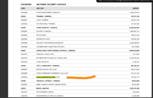 A detailed breakdown shows that security-related institutions dominate spending in this category.