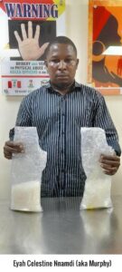 “A prompt deployment of NDLEA operatives on 10th June to Eziani community of Nsukka Local Government Area of Enugu State, led to the arrest of Murphy whose true identity was later discovered to be Eyah Celestine Nnamdi, who had lived in Indonesia for some years before relocating to Doha, Qatar.”