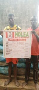 He added that two suspects – Moses Akowe, 32, and Sunday Gabriel, 31 – were arrested with 227.1kgs of cannabis on Tuesday, September 11, at Ikebe village, Ankpa Local Government Area of Kogi State.