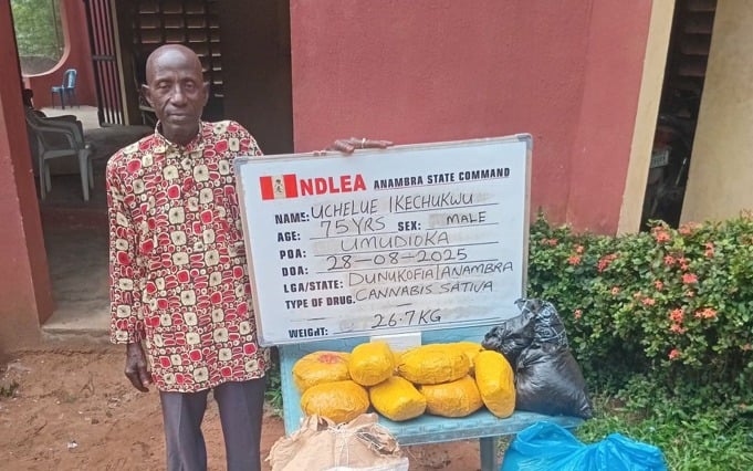 A 75-year-old man, Uchelue Ikechukwu, has been arrested with illicit substances during a raid by the operatives of the National Drug Law Enforcement Agency (NDLEA) in Anambra State.